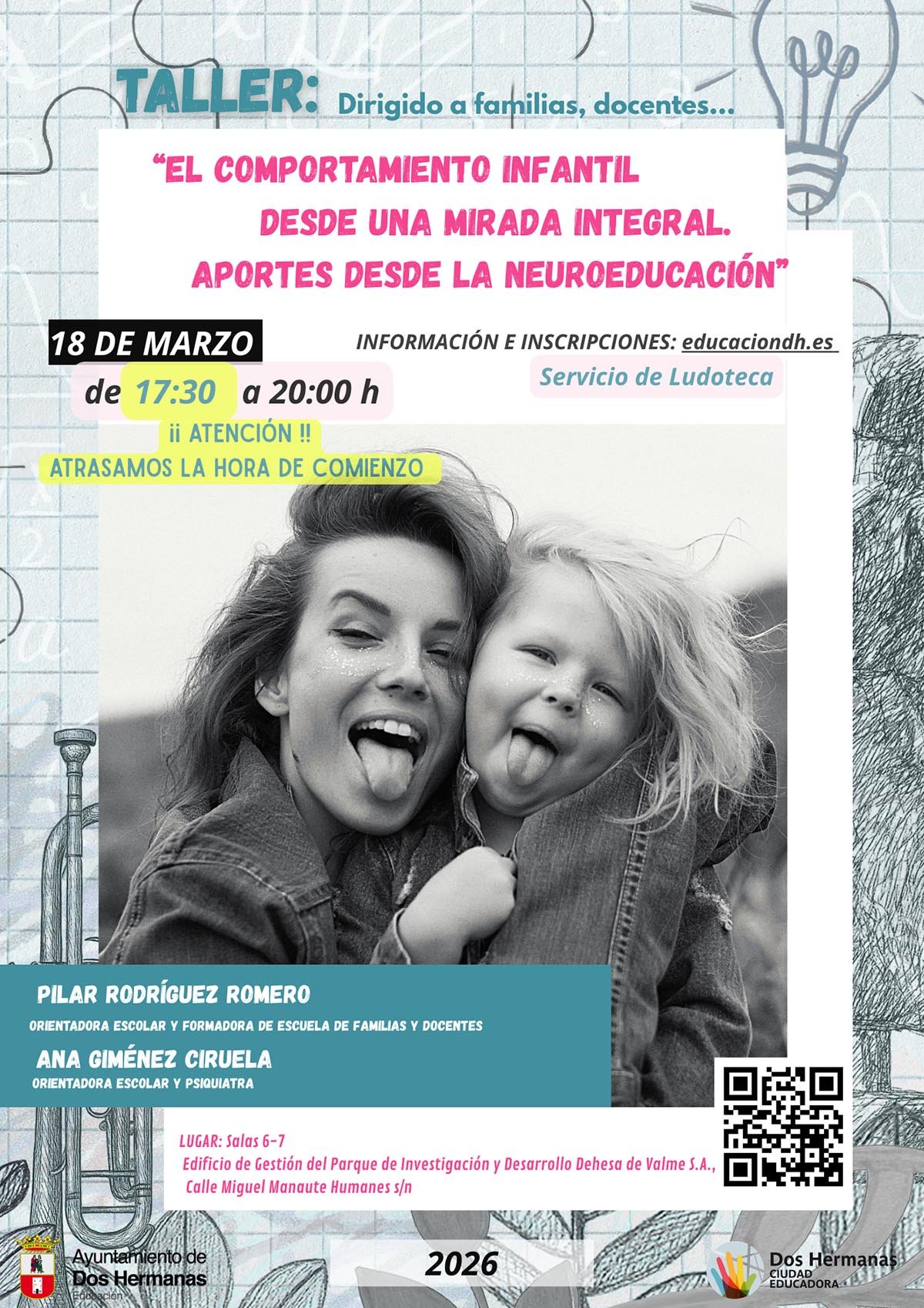 Con este taller Pilar Rodríguez Romero (orientadora escolar y formadora de Escuela de familias) y Ana Giménez Ciruela (orientadora escolar y psiquiatra) , nos ayudarán a entender el comportamiento infantil y facilitar el aprendizaje de nuestros menores, basándose en la Neuroeducación y la educación emocional.
